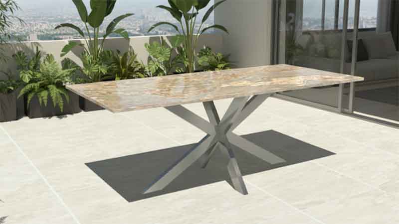 - Hochwertige Materialien: Natursteinplatten kombiniert mit stabilen Gestellen schaffen ein exklusives, wertiges Gesamtbild.