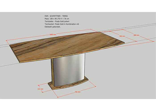 Modell ARUBA – Passen Sie den Tisch ihren Bedürfnissen und ihren Wünschen an. Modell Terra können Sie vom Couchtisch bis zur großen Tafel bis 300 cm konfigurieren. Mit einer Materialauswahl von über 36 Farben,in poliert oder matter Ausführung der Oberfläche. Informationen zur Ausführung: -
