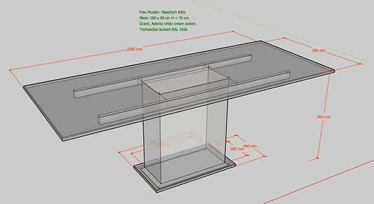 Die Tischsäule wird der jeweiligen Tischgröße angepasst. Für ihren Tisch bekommen Sie eine Detailzeichnung zur Abstimmung.