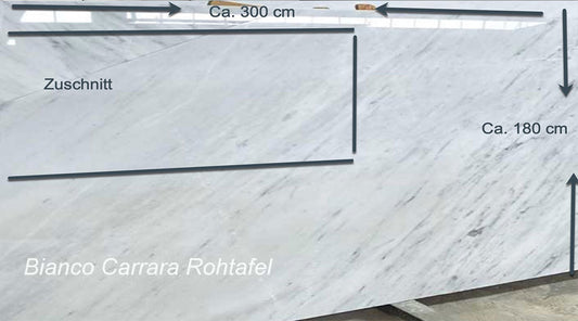 Mass: 180 x 90 cm H = 75 cm - Material: Stabiler Edelstahl/ Marmor Bianco Carrara 2 cm. stark.