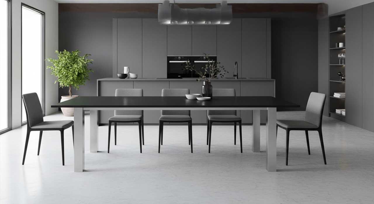Eine tragende Edelstahl-Konstruktion im Inneren sorgt für maximale Stabilität und zuverlässige Lastverteilung – auch bei großen Tischformaten. Das Ergebnis: ein sicherer Stand, kein Verziehen, kein Wackeln – selbst bei massiven Natursteinplatten.