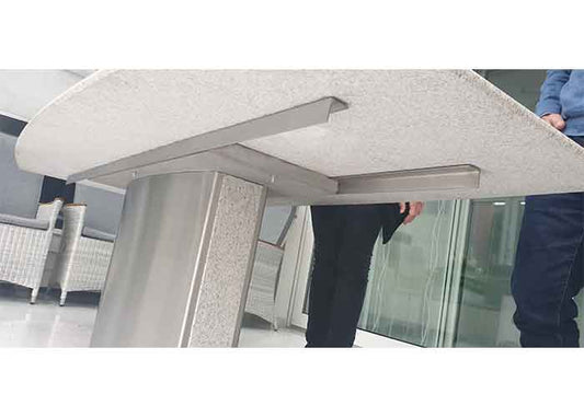 Durch stabile Unterkonstruktionen die je nach Größe der Tische und Modelle individuell angepasst wird.